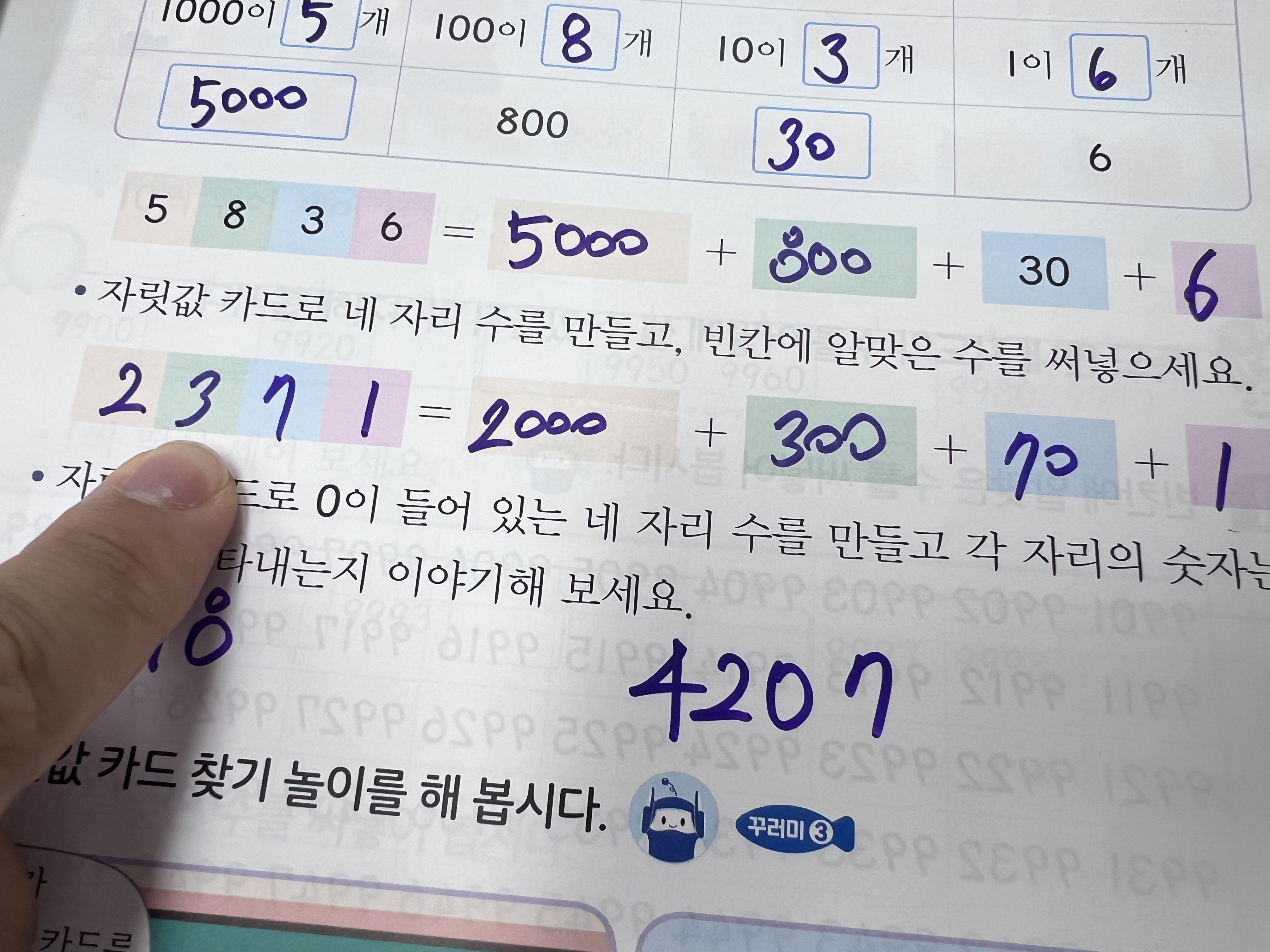 천의 자리, 백의 자리, 십의 자리, 일의 자리