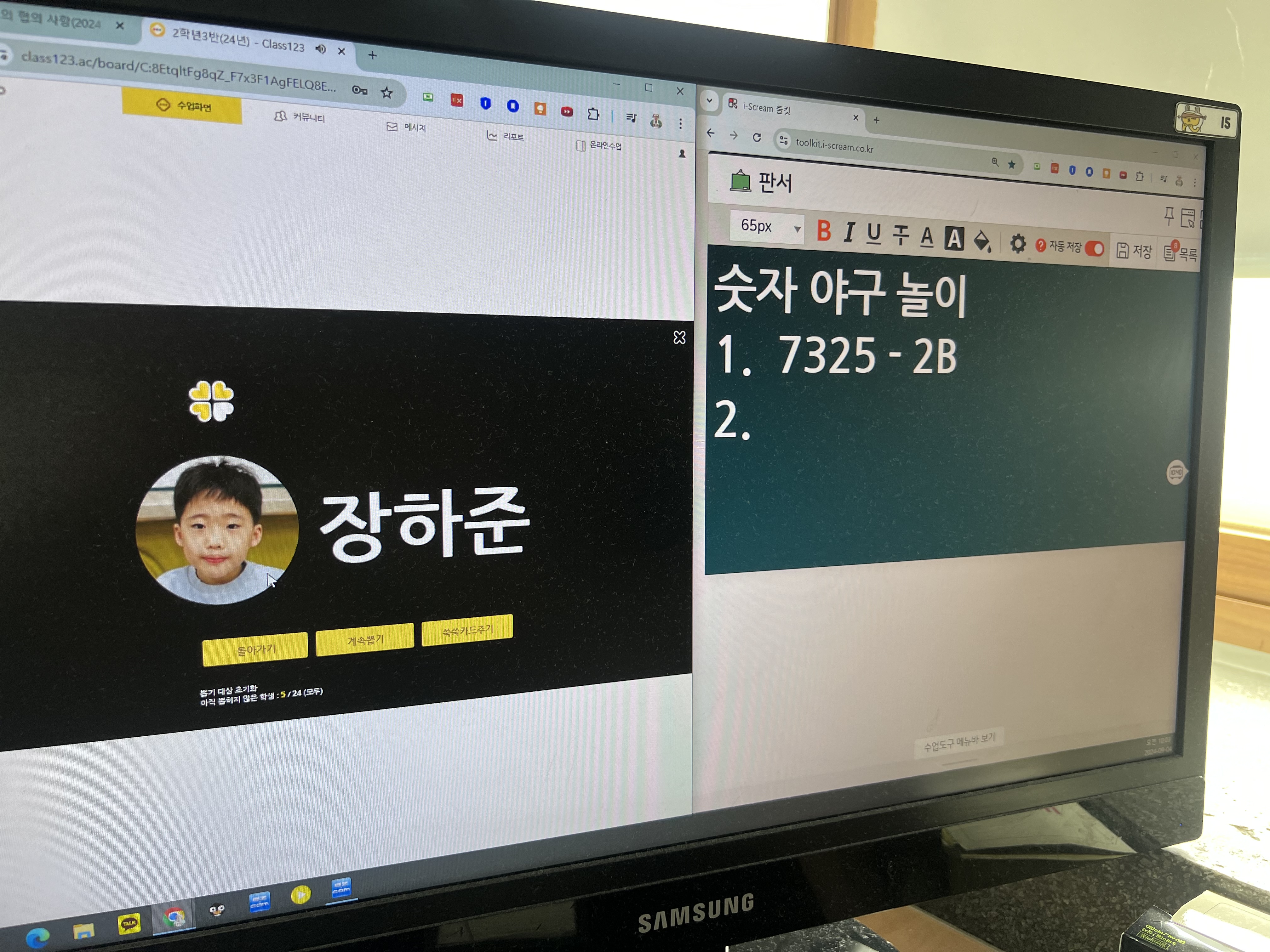 5. 따로 아이들이 적어가며 진행하는 것은 시간이 오래 걸리니 TV판서로 지금까지 나온 숫자를 보여주며 진행하였다.