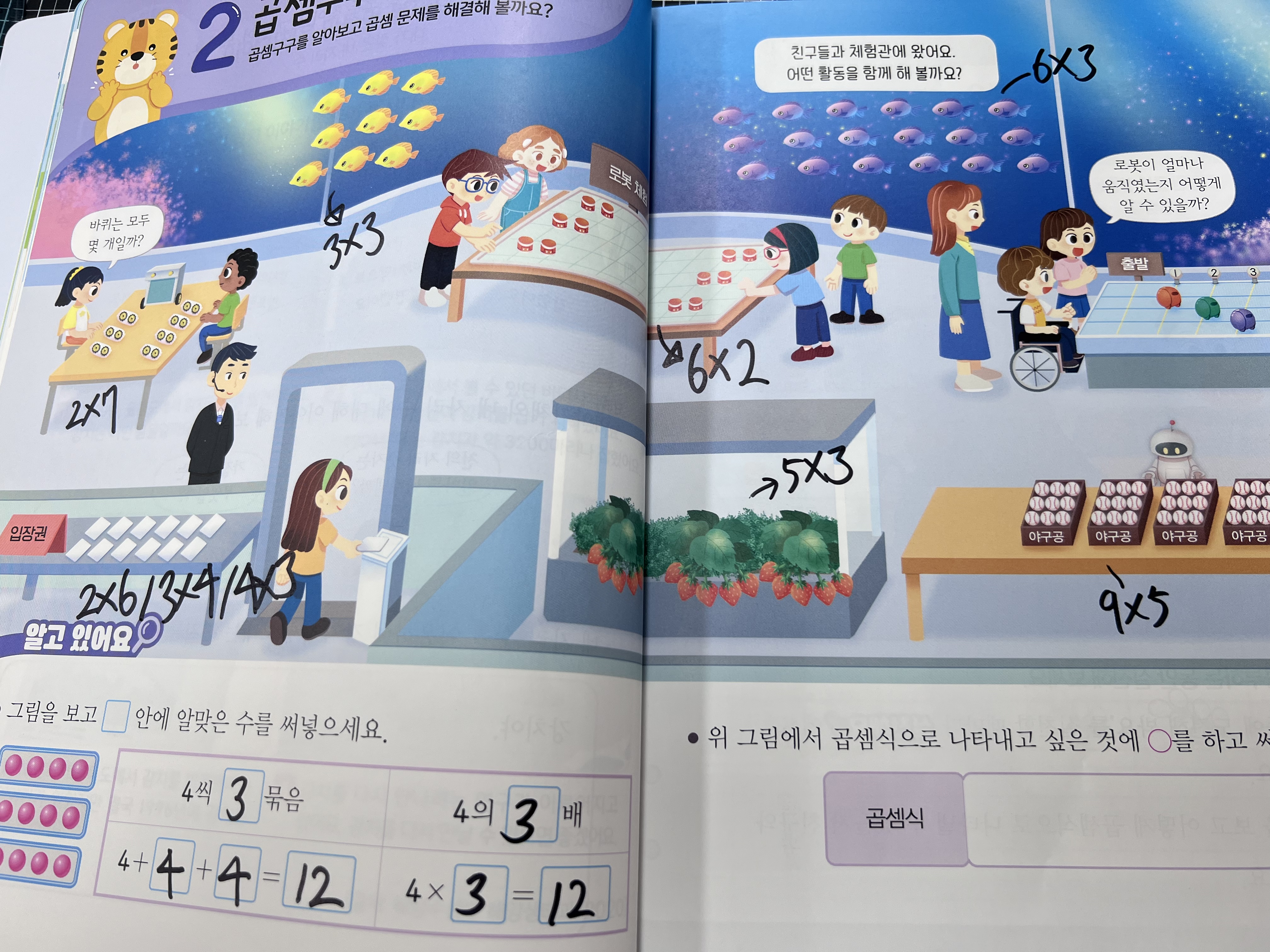 4. 그림 옆에 곱셈식으로 나타낸다.